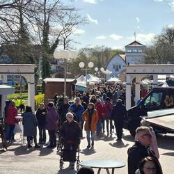 Kühles Wetter mit Sonne, viele gute gelaunte Zuschauer, beim Bier oder was auch immer für ein Getränk.
