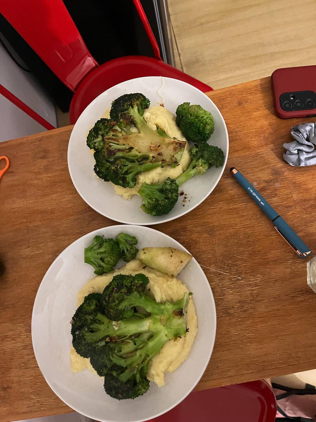 Käse-Kartoffelpüree mit gebratenen Brokkoli