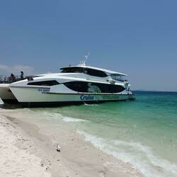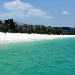 Wir haben einen 1/2-Tagesausflug gebucht und fahren per Boot in ca. 30 Minuten zum Whitehaven Beach.