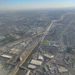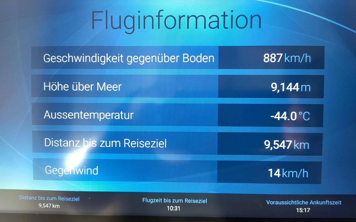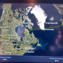 Während des knapp 11-stündigen Fluges hatten wir Rückenwind, daher landeten wir eine ganze Stunde früher als geplant. Fotos: Flugroute und Anflug auf LA, Kalifornien, USA