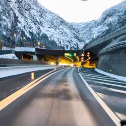 Just before the Gotthard Tunnel, there are snow-covered fir trees. A Christmas mood is setting in—this time without any "Jingle Bells" 😉.