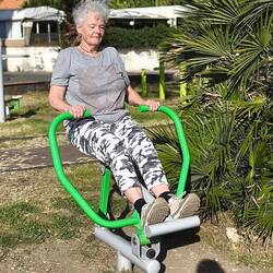It’s really a well-equipped Calisthenics park right on the beautiful coast of Naxos. We worked out for a good hour under the wings of the bronze 'angel' Nike, who is actually the Greek goddess of victory, Nike of Samothrace. There's an arch in the park that frames the Nike statue perfectly when you look through it.