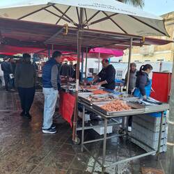 Instead, we head back to our little bar for breakfast. We swap memories with Francesco (using hands, feet, and a photo) and wake up the still-sleeping parts of our spirits with strong coffee and sweet croissants. Arrivederci Francesco, and off to the fruit and veg stall! Here, we stock up on clementines and, surprisingly, high-quality saltfish! With that, we’re ready to make Jamaican or Portuguese dishes—we haven't learned the Maltese ones yet 😉