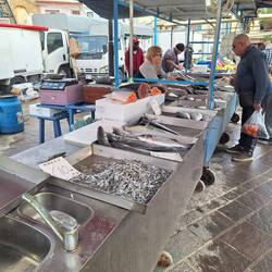 Um 8 sind wir mit den Hunden draußen in einem kleinen Park unterwegs. Es ist noch kalt um diese Tageszeit und mutet durchaus spätherbslich an. Überrascht entdecken wir Spaliere voller Trauben und blattlose Bäume, an denen noch jede Menge rötliche Früchte hängen - Äpfel? - mal näher ran gehen - nein, Kakis! Wir probieren die Trauben. Die grünen sind saulecker! Ob die niemand erntet? Wir könnten welche in unseren Hunde-Beuteln ... aber nein, lassen wir das lieber. Stattdessen kehren wir in unsere kleine Bar zum Frühstücken ein, tauschen mit Francesco Erinnerungen aus (mit Hilfe von Händen, Füßen und einem Foto) und wecken die noch schlafenden Anteile unserer Lebensgeister mit Kaffee und süßen Croissants. Arrivederci Francesco, weiter zum Obst- und Gemüsestand. Hier versorgen wir uns mit Clementinen und Salzfisch, den es erstaunlicherweise hier zu kaufen gibt, und zwar in 1 a Qualität. Damit können wir bei Bedarf jamaikanische oder portugiesische Gerichte zubereiten. Maltesische kennen wir ja noch nicht 😉
