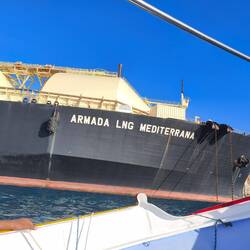 Das Warten hat sich gelohnt. Wir legen ab, bevor das Boot voll belegt ist, und haben viel Platz für uns und die Hunde. Wir verlassen den Hafen und fahren an einem LNG Terminal vorbei aufs offene Meer hinaus, immer in der Nähe der Steilküste. Peppi versteckt sich wie immer unter meinem Sitz, während Cleo am liebsten Galionsfigur sein würde. Die Fahrt führt uns an einem Leuchtturm, an Peter's Pool, einer kleinen Bucht inklusive Höhle für Felsenspringer und mutige Schwimmer, und anderen spektakulären Felsformationen entlang. An uns vorbei fahrende größere Schiffe bringen das kleine Boot ordentlich zum Schaukeln. Nach einer guten Stunde laufen wir wieder in den Hafen ein. Das hat Spaß gemacht! Auf dem Heimweg kommen wir an einer Bäckerei vorbei und holen uns ein paar Snacks, unter anderem eine hier beliebte, mit Erbsenpüree gefüllte Blätterteigtasche. Und dann lassen wir den Tag ruhig ausklingen.