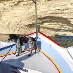 Sunny Monday morning. A great day for a boat trip! Down at the harbour, where there’s a huge choice of tours, we start checking out a few offers. Not every operator accepts dogs on their 10-person boats. But we find a good deal with permission for the dogs and grab tickets for the next tour "in two minutes 😉."