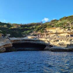 A sunny awakening in a small car park—that’s the perfect start to a day in Malta! In the morning, we immediately headed to the coast, where Peppi and Cleo and I did a bit of coastal climbing in the flat terrain.