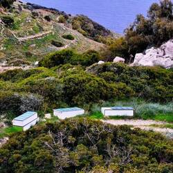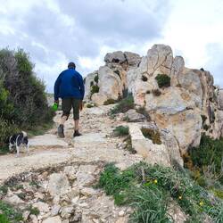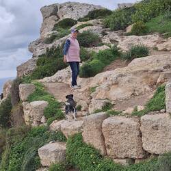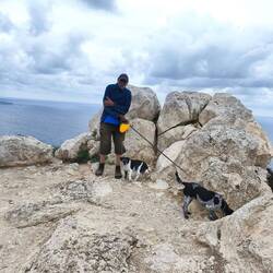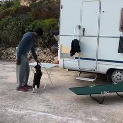 Sonniges Erwachen auf einem kleinen Parkplatz – so startet es sich perfekt in einen Malta-Tag! Vormittags geht's gleich an die Küste, wo mit Peppi und Cleo ein bisschen Küstenklettern im flachen Gelände angesagt ist. Dabei sammle ich gleich mal jede Menge glasscherben ein, die hier überall herumliegen. Echt gefährlich für die Hunde. Während ich mich mit einem Taucher über die dunkle Seite Maltas, genauer gesagt die Mafia, unterhalte, hat Rupert Spaß mit seinem ferngesteuerten Auto Als wir zurück sind, kümmert er sich hingebungsvoll um die Fellpflege der Hunde. Sie täglich zu kämmen erspart uns das ständige Saugen. Dann noch obligatorisches Müll sammeln, unser Tribut an unser Gastland.