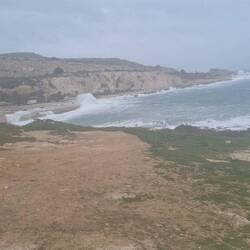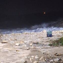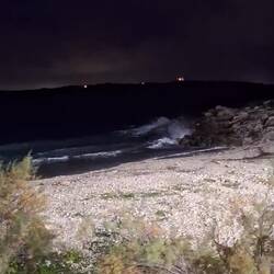 It was still possible to walk along the cliffs and take in the impressive sight of waves crashing high against the shoreline. As evening turned into night, the winds and sea surge grew steadily stronger—so much so that, for the first time, we saw the surf reaching further up the beach toward the road. About 30 meters in front of our camper stood the local Reverse Osmosis waterworks. The road between us and the plant had a slight dip, which led us to believe that even if the water breached the beach, it wouldn't easily reach us. Or so we thought.