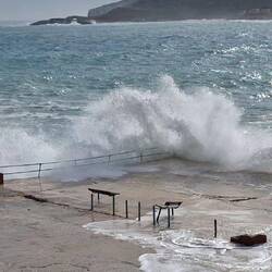 Diesen Mittwochmorgen wurde ich von Peppi und Cleo geweckt, die anschlugen, weil sich draußen Leute lautstark unterhielten. Dann hörten wir das Geräusch einer Radlader , der die Trümmer wegräumte. Bei meiner Gassirunde sah ich das ganze Ausmaß: Die Zerstörung war schrecklich. Wo einst Stufen die Promenade verbanden, klaffte ein riesiges Loch. Parkbänke waren aus ihren Verankerungen gerissen, Betonblumenkästen zertrümmert und über das ganze Areal verteilt. Im Asphalt des Parkplatzes klafften gewaltige Löcher. Die Menge an angespülten Steinen hatte sich über Nacht verdoppelt.