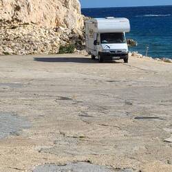 Our final days here at Hondoq and on Gozo are coming to an end. Our neighbors since the new year are also having to move on. There is Ivan, our direct neighbor, who spent his days inside his camper with a broken leg. Then there’s Glenn, who lives and works on Malta but comes to Gozo on weekends to work on the vintage bus he’s converting. Gerd from Saxony is leaving soon anyway to head home, and Amanda will also have to find a new spot to park.