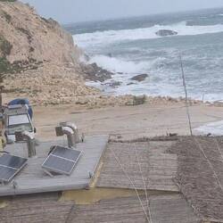 Der Januar stellte uns vor besondere Herausforderungen: Unsere Versorgungsbatterie machte schlapp, und beim Ersetzen brannten die Sicherungen durch. Regen und Wind nahmen zu und gipfelten im Sturm Harry, der uns zweieinhalb Tage im Auto gefangen hielt, unseren schönen Hondoq Beach verwüstete und uns zeitweise zu Nomaden machte.