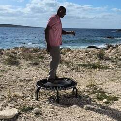 Ever since we left Hondoq after the storm, we’ve been feeling a bit like nomads. We stayed there longer than anywhere else, and we really miss it. It was so peaceful watching the boats pass by with that great view of Comino. We even had our trampoline set up, and there was this perfect little platform where I could lay out my mat for my stretches. Early in the morning, we’d be woken up by the first fishermen casting their lines exactly where the rocks used to be. A bit later, a fitness group would regularly show up for their 'Silent Disco,' headsets and all. A kite-surf instructor had his student practicing on dry land, endlessly adjusting his kite to the wind.