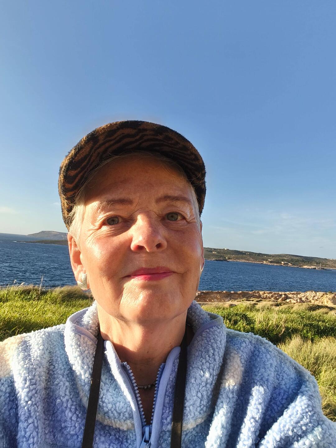 Gestern: Rupert und ich sitzen auf unseren unbequemen Klappstühlen in der Sonne. Nach und nach laufen immer wieder sympathische junge Leute an uns vorbei, über die dicken Steine hinweg Richtung Klippen. Wir grüßen freundlich und kommen schließlich mit einer jungen Frau namens Arlena aus Göttingen ins Gespräch. Sie erzählt uns, dass sie zu einer Gruppe ehrenamtlicher, queerfeministischer HandwerkerInnen aus Deutschland gehört. Sie renovieren momentan das Sea-Watch-Schiff Louise Michel, das von Banksy gesponsert wird und bis Ende März in Valletta im Trockendock liegt. Sie sind für einen gemeinsamen Wochenendausflug nach Gozo gekommen. Einige von ihnen tragen Zunftkleidung. Aus der Entfernung beobachteten wir ihr munteres Treiben im Wasser und an Land bis in die Nacht hinein. Dummerweise regnet es mittlerweile mal wieder, aber heute erzählt mir Arlena, dass alle die Nacht trocken in Autos und Zelten überstanden haben. Wieder mal eine schöne Reisebegegnung.