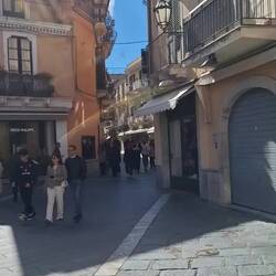 Wir sind auf Sizilien einen von Frühlingsblumen gesäumten, baufälligen Weg entlang zur hoch oben gelegenen Altstadt von Taormina gewandert.