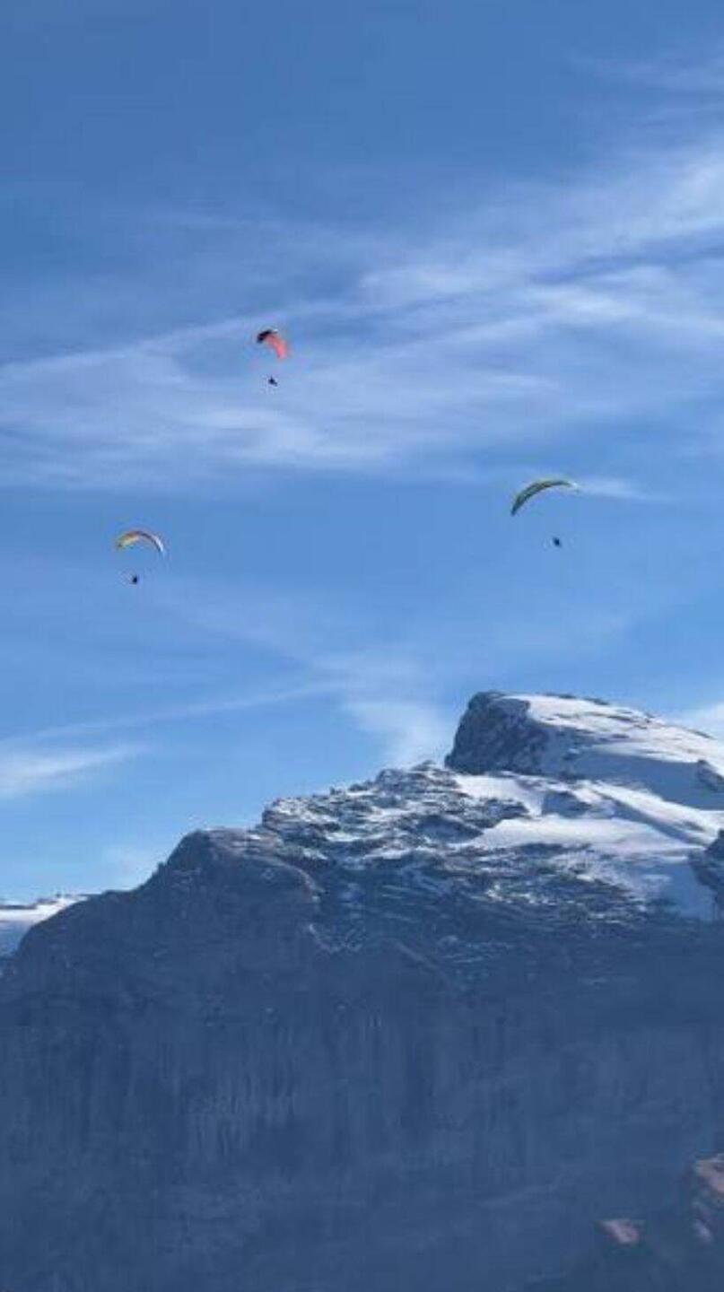 Right now, we’re driving through Switzerland towards Freiburg, after a little break in Engelberg—a place I once visited years ago with Rupert on one of his many "Europe-in-7-days" trips. Looking at the snow-capped Mount Titlis, I can see colorful paragliders catching the thermals. I’m a little jealous, to be honest; it looks like they could just float up there forever. I wonder how they actually bring the wing down? Back when I was skydiving, that was something I never had to worry about...