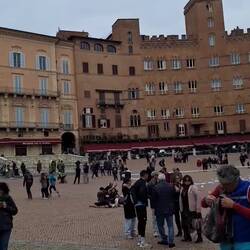 In der Toskana haben Rupert und ich uns den Wunsch erfüllt, das wunderschöne Siena wiederzusehen, wo vor 33 Jahren unsere Liebe nur wenige Tage zuvor auf der Busfahrt mit meiner Klasse nach Italien zu schwingen begonnen hatte. Siena überraschte uns mit einem Marathon-Spektakel. Als wir ankamen, liefen gerade unter lautstarken Kommentaren die ersten Läufer auf dem großen Campo ins Ziel ein und wurden in goldene Rettungsfolie gehüllt. Italienischer hätte die Atmosphäre kaum sein können.