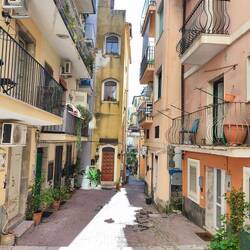 Since leaving Malta, we’ve definitely switched into "sightseeing mode." In Sicily, we hiked up a crumbling path lined with spring flowers to the clifftop old town of Taormina. In Southern Italy, we spent five fascinating hours in Pompeii, which is still not fully excavated. We managed to camp right next door under orange trees at "Spartacus" camping. I even discovered a little tree with red-fleshed lemons there! The skin was a bit bumpy, partly yellow and partly reddish.