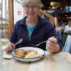 Rino heeft, na drie dagen veel achter het stuur, behoefte aan een dag niets. Rustig opstarten. Als hij in de benen komt, heb ik al gedoucht en hangt de was heerlijk te wapperen. Waarschijnlijk met eenLeer más