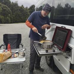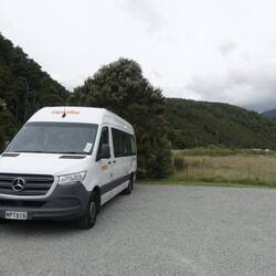 Rino heeft weer voor een heerlijk ontbijt gezorgd. Zometeen eerst naar Hokitika om de steen voor Tjims ring op te halen. Als we daarna naar Hokitika Gorge rijden, zien we de eerste sneeuw op deLeer más