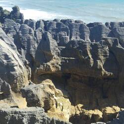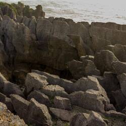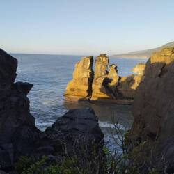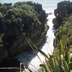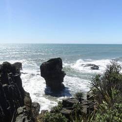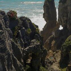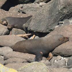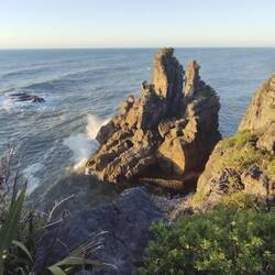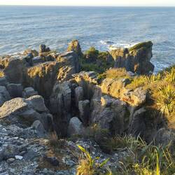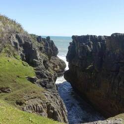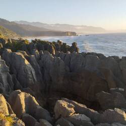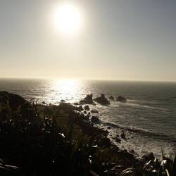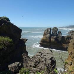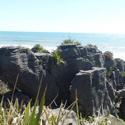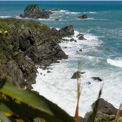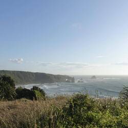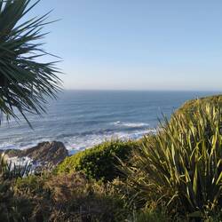 Douchen, ontbijten, dumpstation en op naar Tauranga Bay. Daar beginnen we aan het tweede deel van onze Cape Foulwind Hike way. Nu de andere kant op. Na nog geen kwartier staan we al op het zeehondenLeer más
