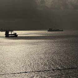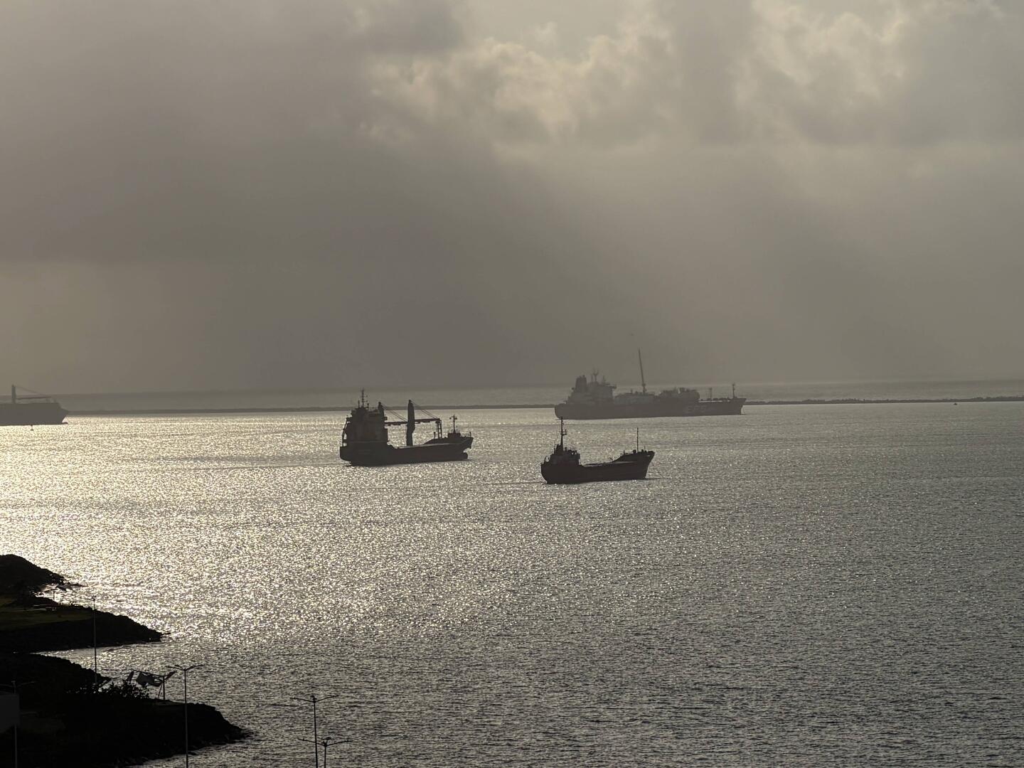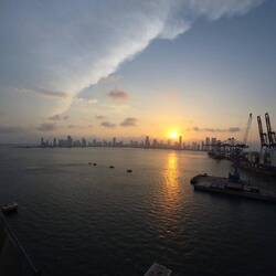 Eingang / Ausgang des Panamakanals mit den wartenden Schiffen für die Durchfahrt.