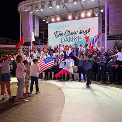Die Crew bedankt sich auf dem Weg zum Ausstiegshafen La Romana