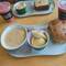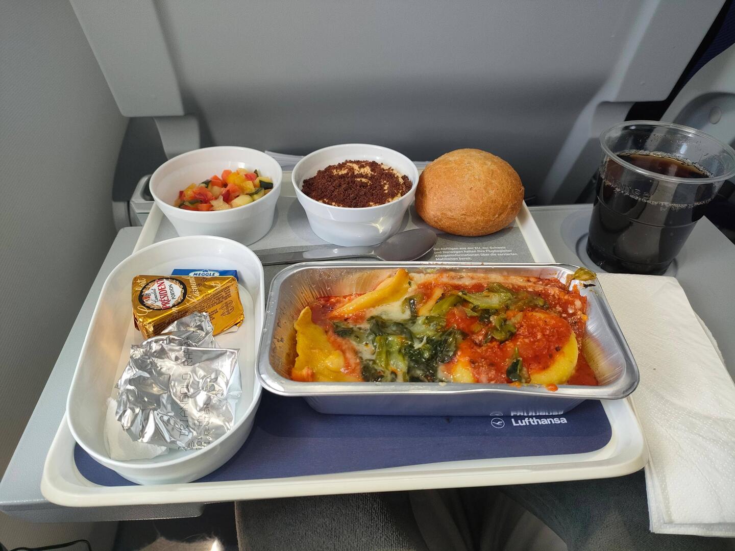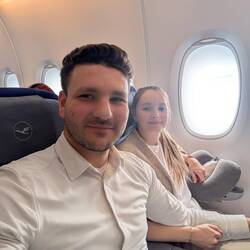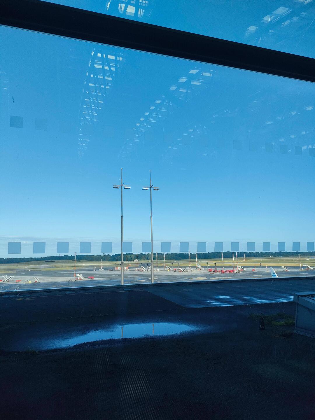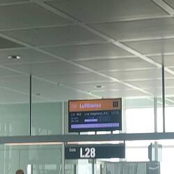 Frühstück in der Airport Lounge und warten auf das Boarding für den Flug nach München