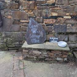 Normale begroeting naar en onder pelgrims is "Buen camino".