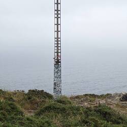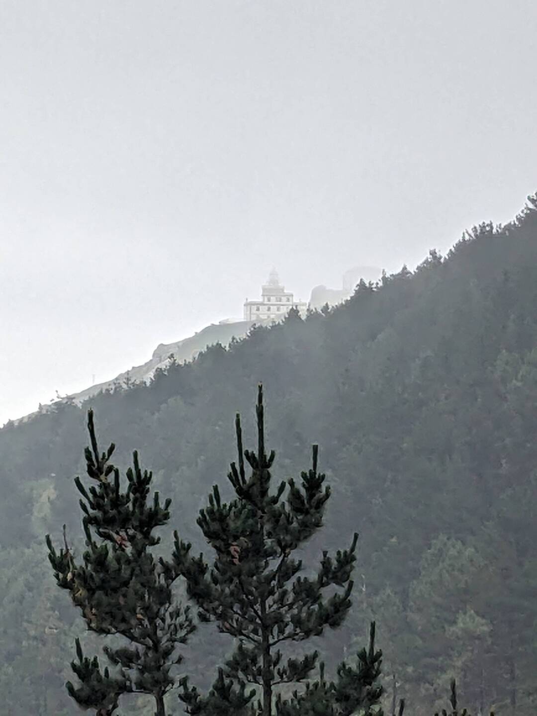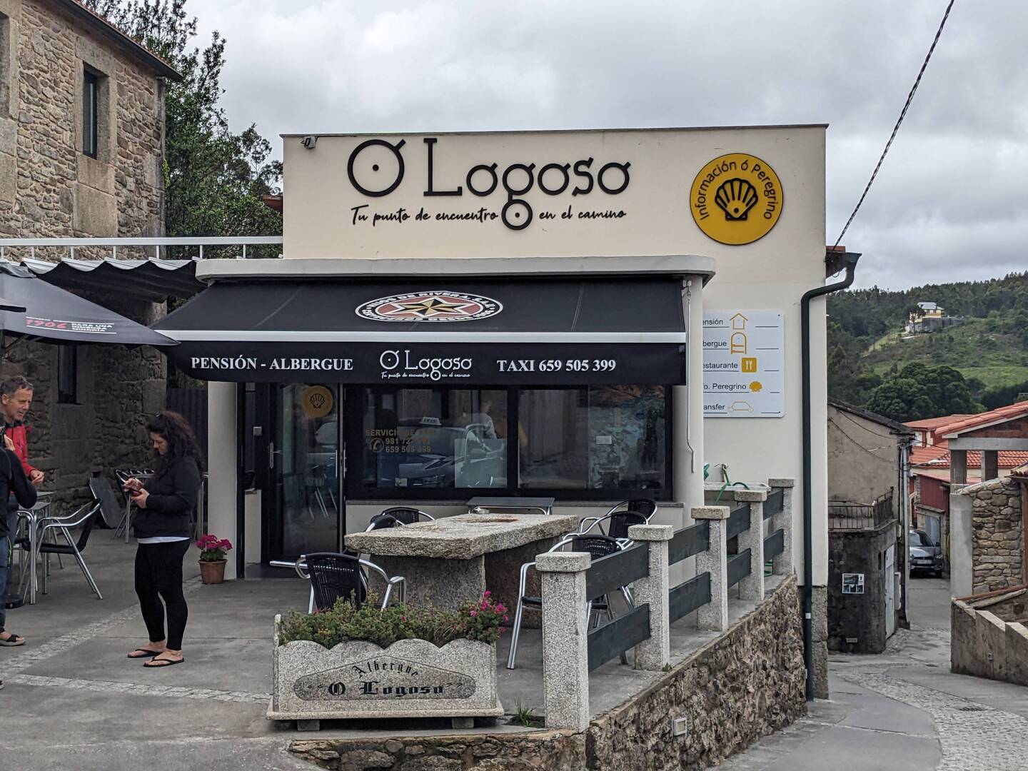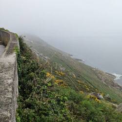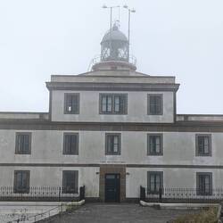 Vanmorgen wel naar de vuurtoren gelopen met rugzak, want ik moest de herberg uit. Het was een lekkere wandeling van 2 km. Het was mistig, maar had nog wel een beetje uitzicht zoals je op de fotos ziet. Toen ik wegging begon het echt te regen en kwamen er veel meer pelgrims naar boven.