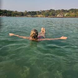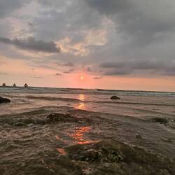 Nachdem vergangene Nacht Weltuntergangsstimmung war und es dann 400 Prozent Luftfeuchtigkeit hatte, konnte man es nur im Meer aushalten