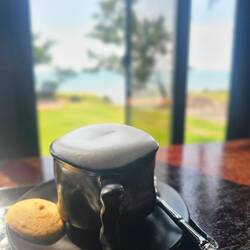 Der erste Weg hat uns dann zum gescheiten Kaffee geführt und der Ausblick dortLæs mere