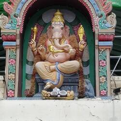 Mooie, kleurrijke Sri Mariamman tempel. We kwamen net binnen terwijl er een dienst aan de gang was. Lekker ongedwongen, beetje chaotisch en spontaan.