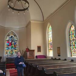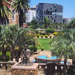 Die Christuskirche gilt als Wahrzeichen der Stadt und wurde 1907 bis 1910 als Symbol des Friedens aus lokalem Sandstein erbaut. Wie in Swakopmund stiftete Kaiser Wilhelm II. die bunten GlasfensterLeia mais