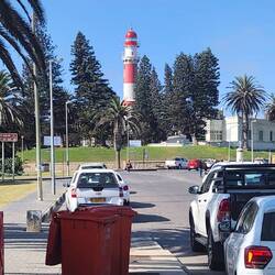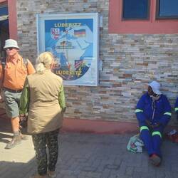 In Swakopmund waren wir am Nachmittag wieder vereint, haben im Café Anton zwei Stück Kuchen genascht und das 1894 erbaute Woermann-Haus mit dem Damara-Turm gefunden. Dieser diente als Wasserturm undLeia mais