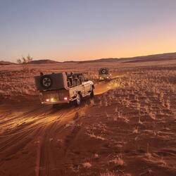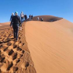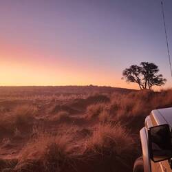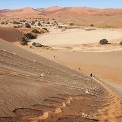 Um 5.30 Uhr heißt es Abfahrt zum Sossusvlei. Die Vlei ist eine von Dünen umgebene Lehmsenke, die sich nur in guten Regenjahren mit Wasser füllt.