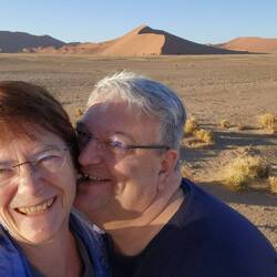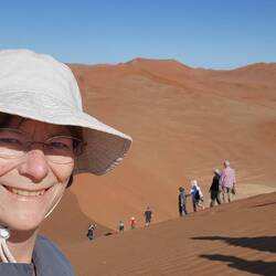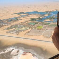Micha fuhr 5 Stunden mit dem Bus auf ungeteerter Straße durch den Namib-Naukluft-Nationalpark bis an die Atlantikküste. Der Park wurde 1979 eröffnet und ist mit rund 50.000 km2 Namibias größterLeia mais