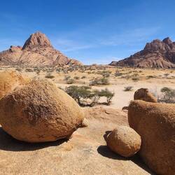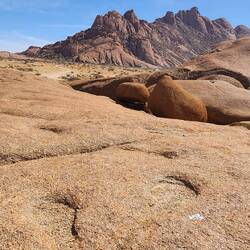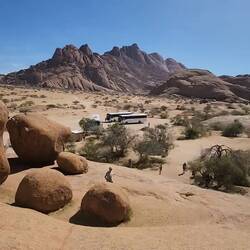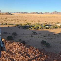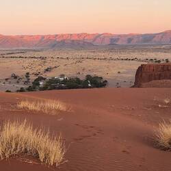 Die Namib-Wüste (UNESCO-Weltnaturerbe) ist die älteste Wüste der Welt. Die 4-stündige Fahrt auf überwiegend ungeteerter Piste führt von Mariental über den Zarieshoogte-Pass in unsere Lodge fürLeia mais