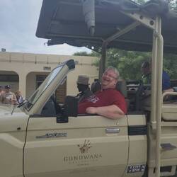 Am Abend fahren wir in offenen Geländewagen zu unserem ersten Sundowner.