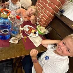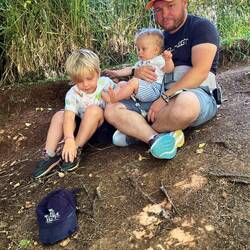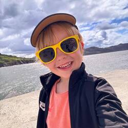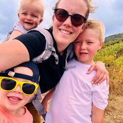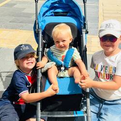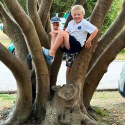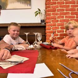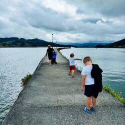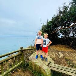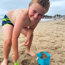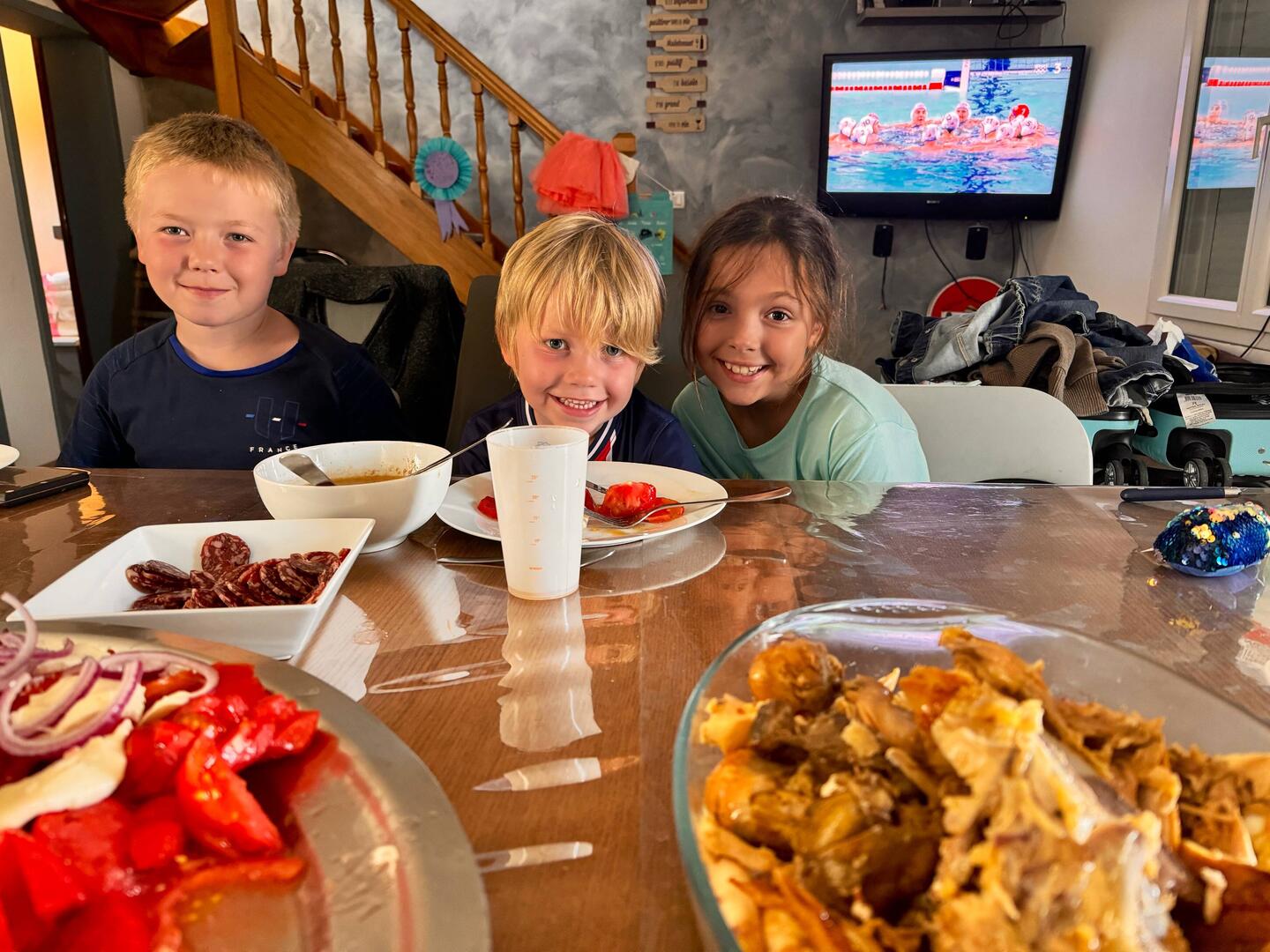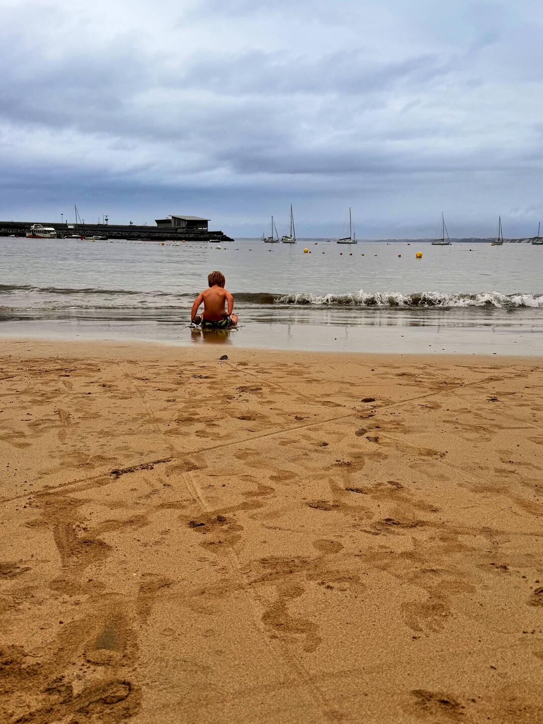 Papa et Gabin sont partis faire de la course à pied et du vélo; avec Eliott et Arthur on profite de la plage 🏝️