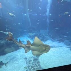Took the cable car right over the ship to Sentosa Island, hopped on a free monorail and took a short walk past Universal Studios Singapore to " the world's largest aquarium."