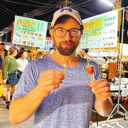 Am Morgen food Tour durch tainan mit 2 Michelin Restaurants, mit lustigem Vorfall beim Teekauf. 🙈 Danach Fahrt nach Taijung. Abschied von Ru. Busfahrt zum SML. Sehr ruhiger Ort.
