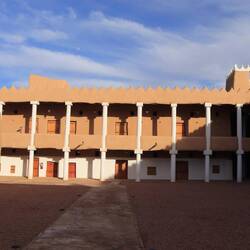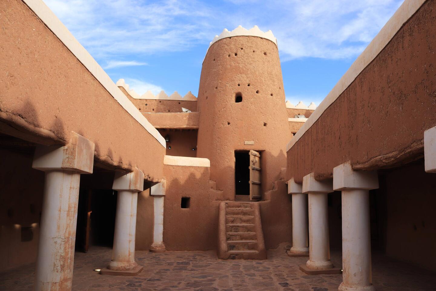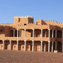 Der Qishlah-Palast steht mitten in der Stadt. Es handelt sich um ein quadratisches, zweigeschossiges Gebäude aus Steinen und Lehm, das in den 1930er Jahren als Kaserne für die Truppen von König Abdulaziz diente. Später wurde es in ein Gefängnis umgewandelt. ein riesiges beeindruckendes Gelände, das uns irgendwie in seinen bann zieht.