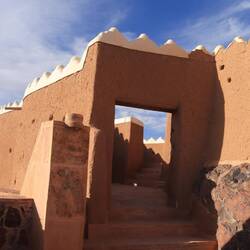 Am späten Nachmittag besteigen wir den Jabal A‘arif und besichtigen das Fort. Eine schöne Anlage in typischer Lehmbauweise. Wir treffen dabei auf zwei sehr nette Saudis, die auch noch englisch sprechen und uns die Geschichte des Forts erzählen. Außerdem erzählt er uns, was die traditionelle Kleidung ausmacht und dass die Kaftane im Winter aus weicher, dunkler Wolle hergestellt sind, während im Sommer weiße, dünne Kaftane getragen werden. Und es stimmt, sein Kaftan fühlt sich herrlich warm an.
