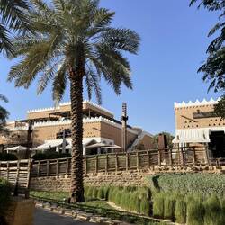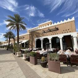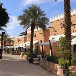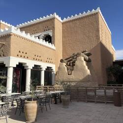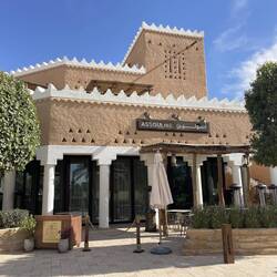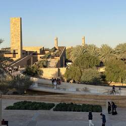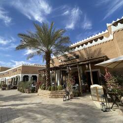 Am Abend essen wir hier ein letztes Mal zu Abend. Ein sehr feines Abendessen, bei dem Wehmut aufkommt, weil ich so überhaupt nicht nach Hause fliegen möchte. Auch bei Nacht verstrahlt Bujairi eine schöne Atmosphäre. Einige der Lehmhäuser werden von Lichtinstallationen mit schönen Mustern und Ornamenten verziert. Nachdem es den ganzen Tag sehr leer war, wird es nun richtig voll. Die Saudis verbringen ihre Abende ebenfalls hier. Kein Wunder bei diesem wunderschönen Ort. Es gibt weder freie Parkplätze noch einen Platz in den Restaurants.Read more