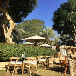 Als uns am Nachmittag die Füße wehtun, setzen wir uns in ein wunderschönes Café mit Blick in das Wadi und stärken uns mit leckeren Taccos. Die Bestellung erfolgt via QR Code und die Bezahlung ebenso. Ohne Technik läuft hier nichts mehr. Während unserer Pause genießen wir den Blick ins Wadi, beobachten die vielen, verschiedenen Vögel und freuen uns über die Ruhe. Ein wunderschöner, friedlicher Ort.