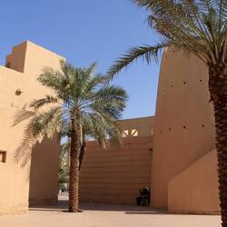 Das Al Masmak Palace Museum liegt im Herzen Riyadhs. Die Festung nimmt eine wichtige Rolle in der Geschichte Saudi-Arabiens ein. Das Fort wurde von König Abdulaziz, dem Gründer des heutigen Saudi-Arabiens, eingenommen. Mit der Eroberung fiel Riyadh in die Hände der Familie Saud. Die Herrscherfamilie führte von hier mehrere Feldzüge. Die gesamte Historie ist im Museum schön dargestellt. Hier treffen wir zum ersten Mal im Land auf die größte Anzahl an Touristen. Wo sind sie die letzten 2 Wochen gewesen? Irgendwie gibt es sie ja. Wir haben sie aber nie gesehen. Zu unserem Glück. Hier in Riyadh trifft man auch auf deutsche Reisegruppen und mehrere Individualreisende. Aber alles in einer Größenordnung, die man an einer Hand abzählen kann.