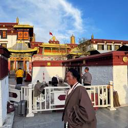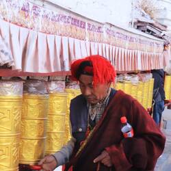 Die Klosteranlage ist grandios in den Fels gebaut und überblickt das Tal. Die leuchtenden, roten Farben begeistern mich auch hier wieder. Im Gegensatz zu Beijing und Xi‘an gibt es in Lhasa wenig Touristen. Vor allen Dingen wenige westliche Touristen. Das ist sehr angenehm.