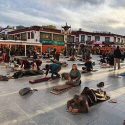 Doch was für ein Gefühl muss es sein, den Jokhang Tempel tatsächlich zu erreichen. Ich vermute, ein größeres Siegesgefühl kann es nicht geben. Ein Glücksgefühl, aber auch Demut, es geschafft zu haben und Buddha nach 2.000km ganz nahe zu sein. Die Pilger strahlen eine unglaubliche Kraft aus. Ich komme mir klein und unvollkommen vor und schmelze aus Respekt vor dieser Leistung fast dahin. Wieder überrascht es mich, wie tief Glaube sein kann und was er mit den Menschen macht.Read more