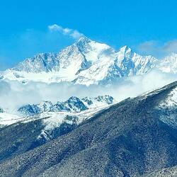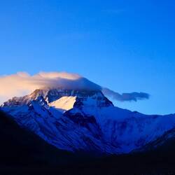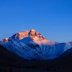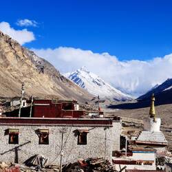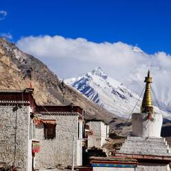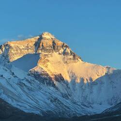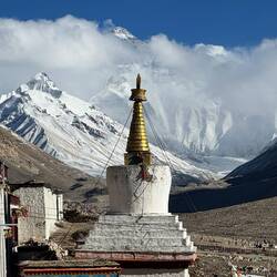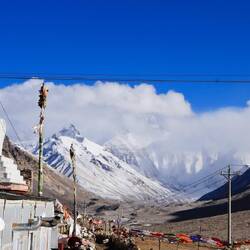 Unser Guide ruft beim Aussteigen aus dem Bus: „Lauft, das Wetter ändert sich. Ich mache alles.“ In dünnster Luft eilen wir auf den höchsten Berg der Welt zu. Ist das ein Anblick. Immer wieder taucht sein Gipfel aus den Wolken auf. Dann verschwindet er wieder. Wir steigen die Treppen oberhalb des Klosters Rongbuk hinauf. Da liegt er vor uns in seiner ganzen Breite und Höhe. Majestätisch, eiskalt, wunderschön. Der Atmen wird mir vollständig geraubt. Leider nicht nur von seinem Anblick. Ich brauche die kleine Sauerstoffflasche. Ich stelle fest, dass ich beim Fotografieren die Luft anhalte. Prinzipiell perfekt. Doch nicht hier. Mein schwerer Atemrhythmus kommt durcheinander. Mir fehlt mindestens eine Runde Einatmen. Das Herz rast. Es dauert einige Zeit bis ich meinen Rhythmus wieder habe. Ist das anstrengend.